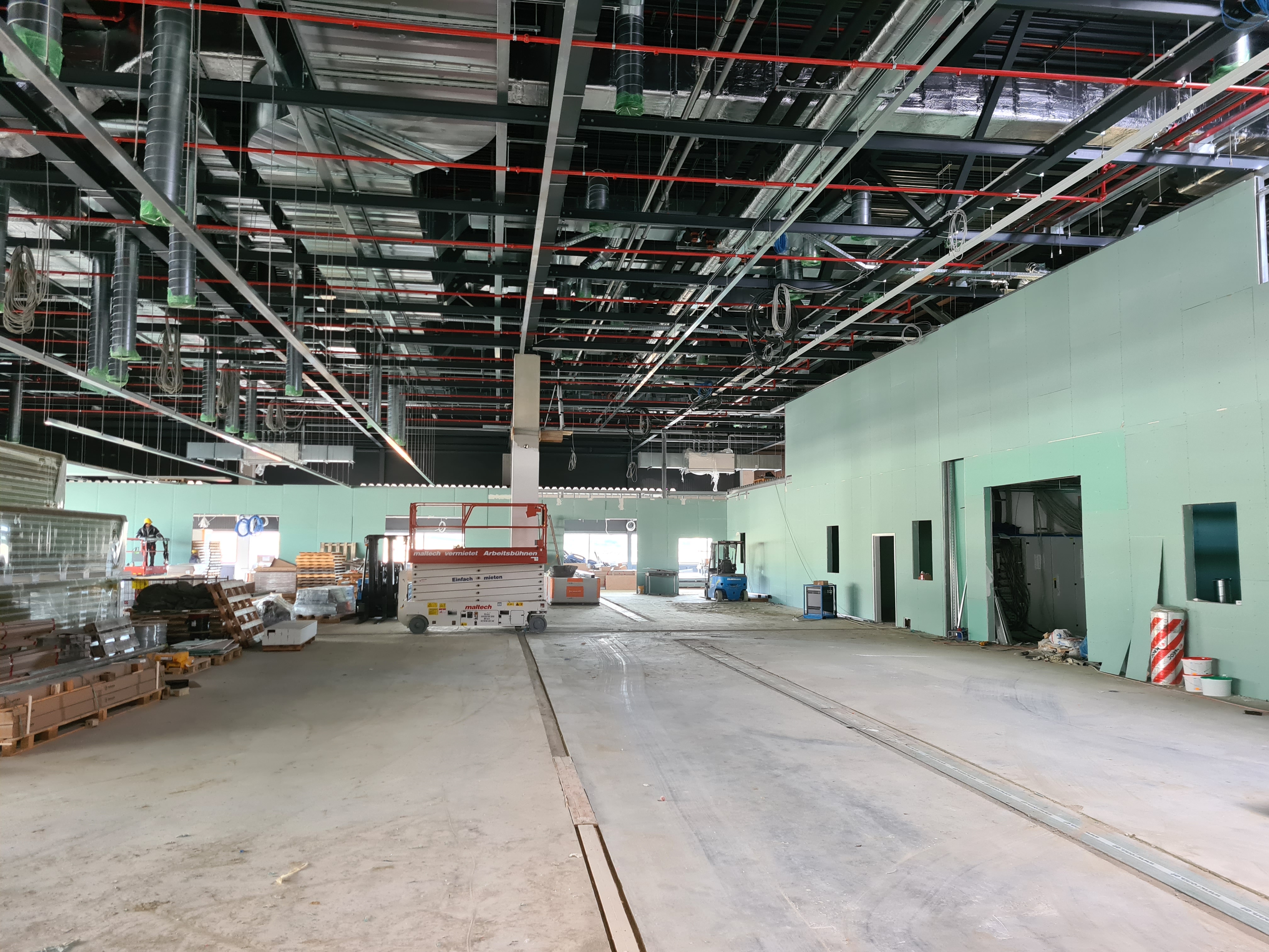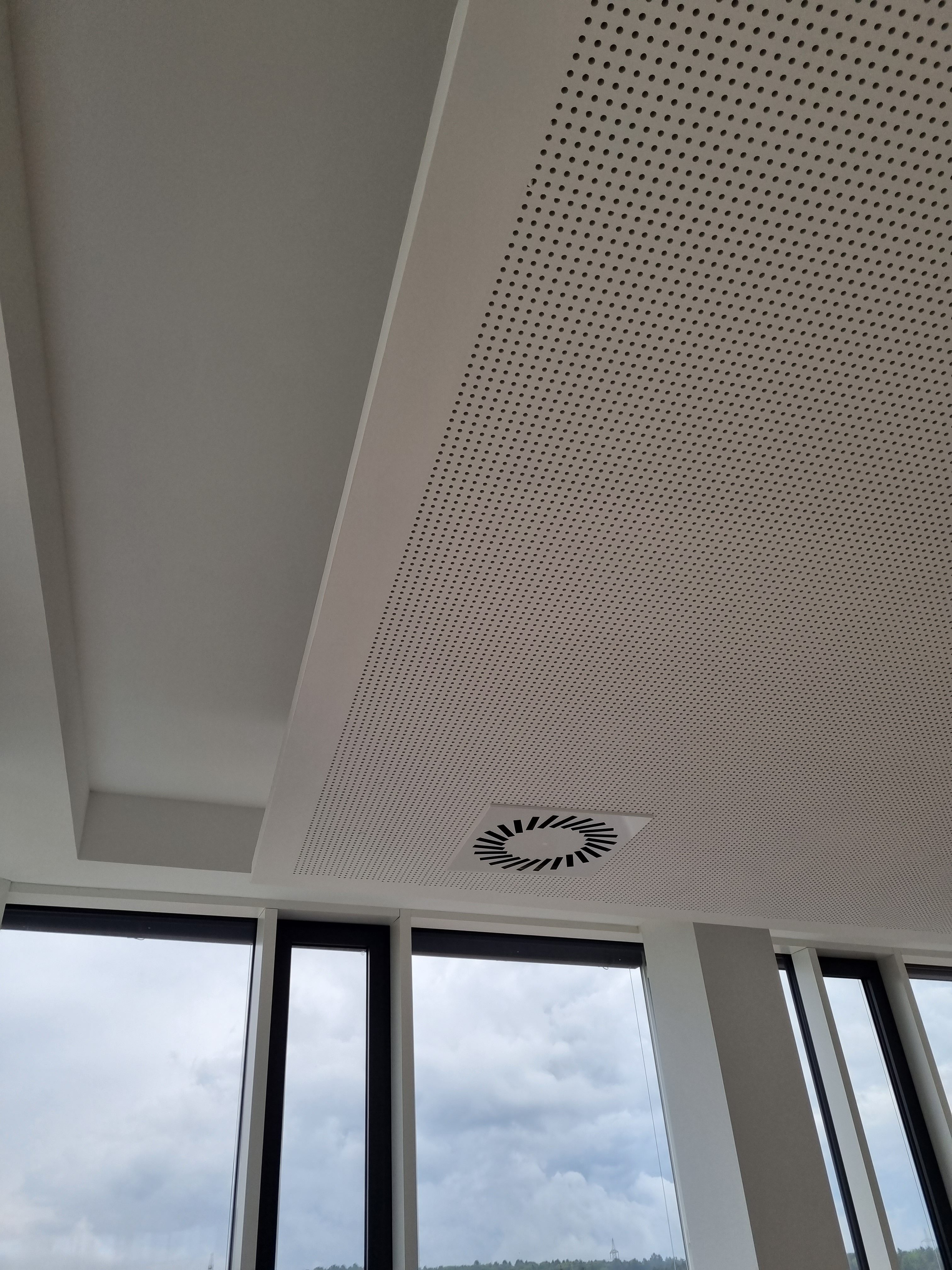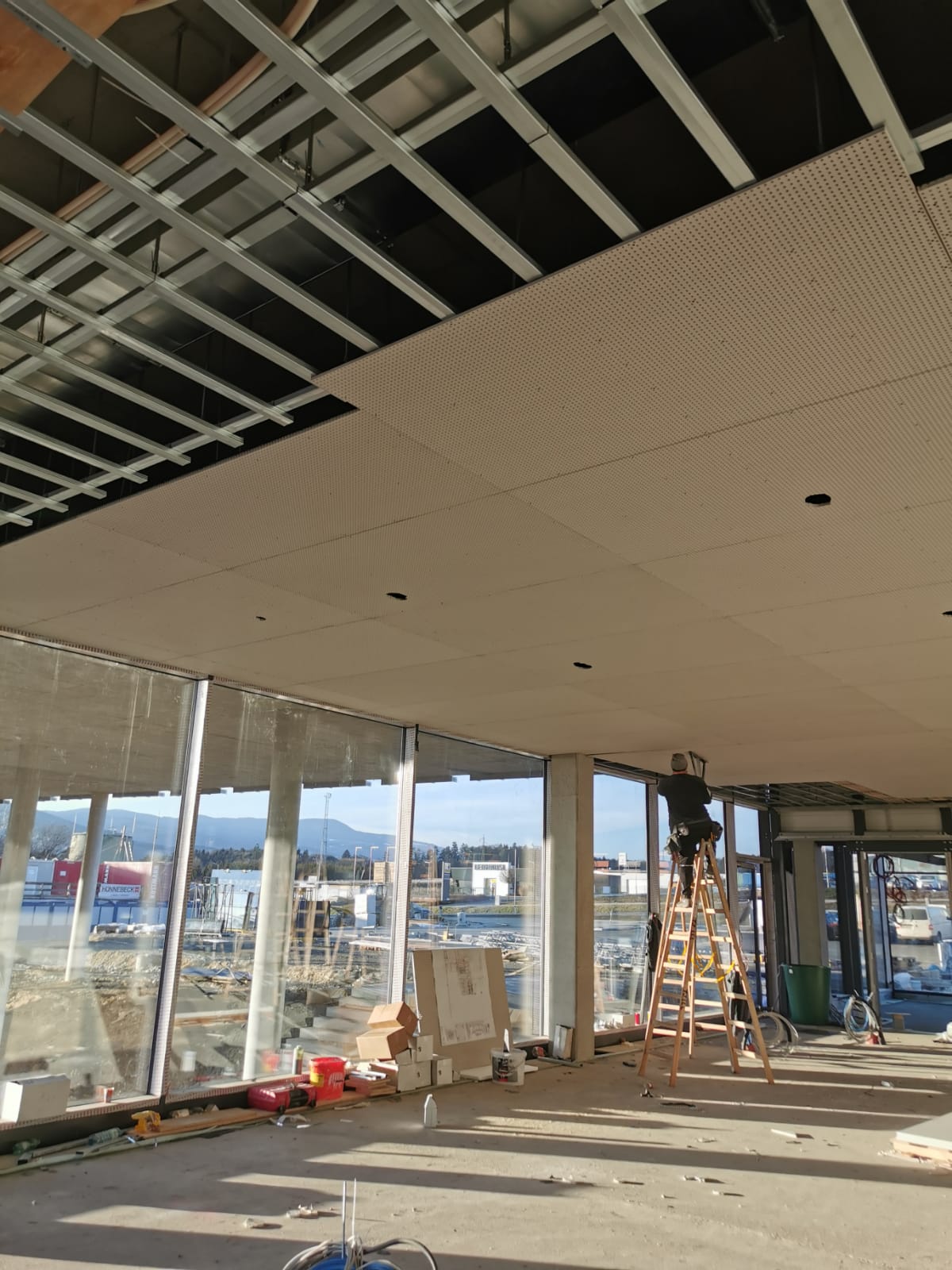 Ausgeführt wurden die Trockenbauarbeiten in den Produktions-, Reinraum- und Bürobereichen. In der Produktion und in den Reinräumen wurden besondere Anforderungen an die Verarbeitung gesetzt, um die hygienischen Anforderungen zu erfüllen. Der Ausbau der Büroräumlichkeiten erfolgte allem voran mit den Anforderungen der Raumakustik, welche mit Gipskarton Lochdecken hergestellt wurden.